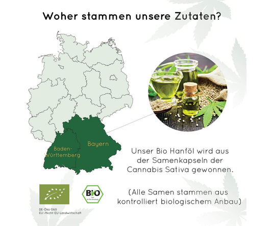 Bio Hanföl für Hunde in nachhaltiger 500ml Glasflasche - Kaltgepresst